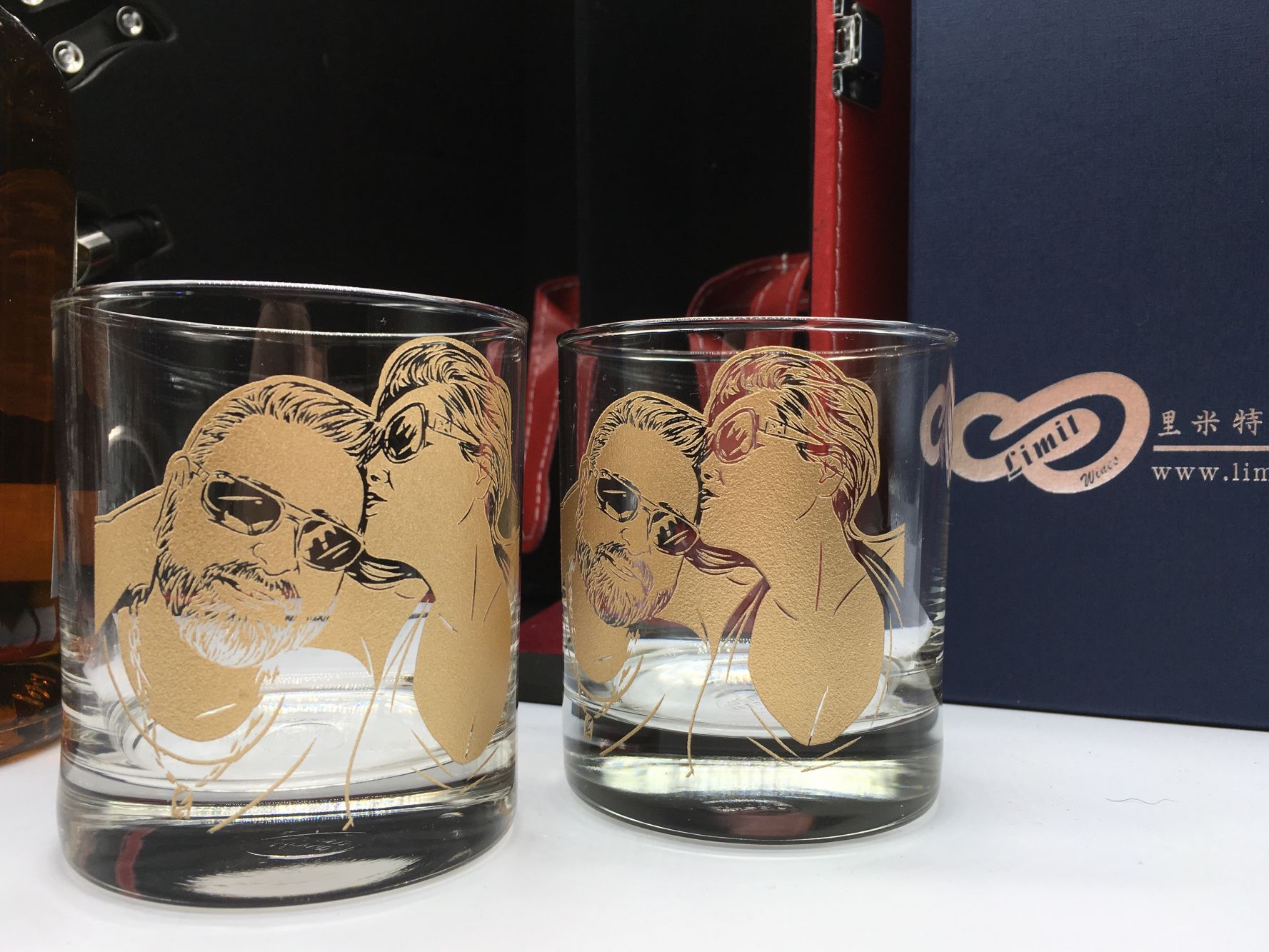 手繪人像Q版或寫實版雕刻+照片網點雕刻紅酒組